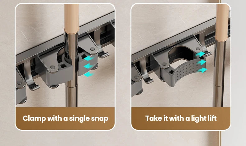 Non Perforated Mop Rack Iron Wall Mounted Mop Broom Storage Rack Home Storage And Storage Shelf Multi Scenario Use